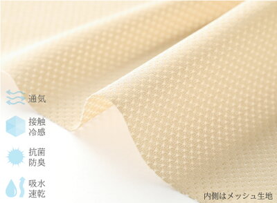 内側は通気性、吸水速乾性、抗菌防臭性、接触冷感機能が備わった 高機能メッシュ生地。
